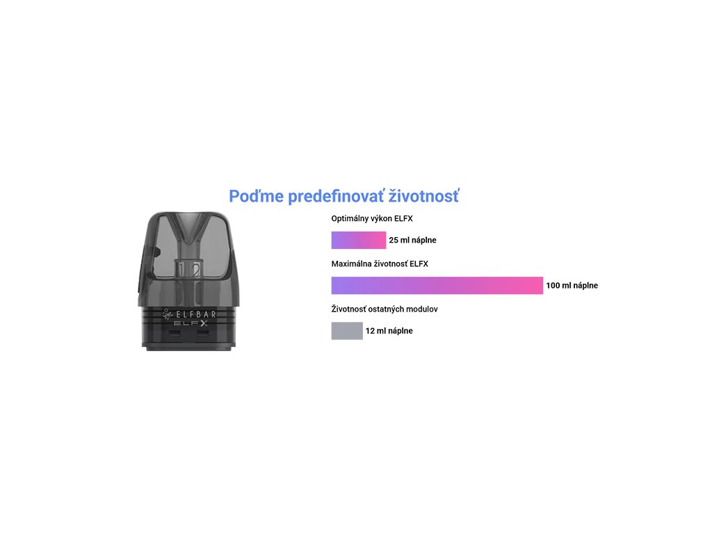 Pýchou celého prístroja sú jendnoznačne nové catridge. Technológia ELFBAR sľubuje bezprecedentné zlepšenie či už v zabránení pretekania, životností žeraviaceho telieska ako aj podaniu chutí.