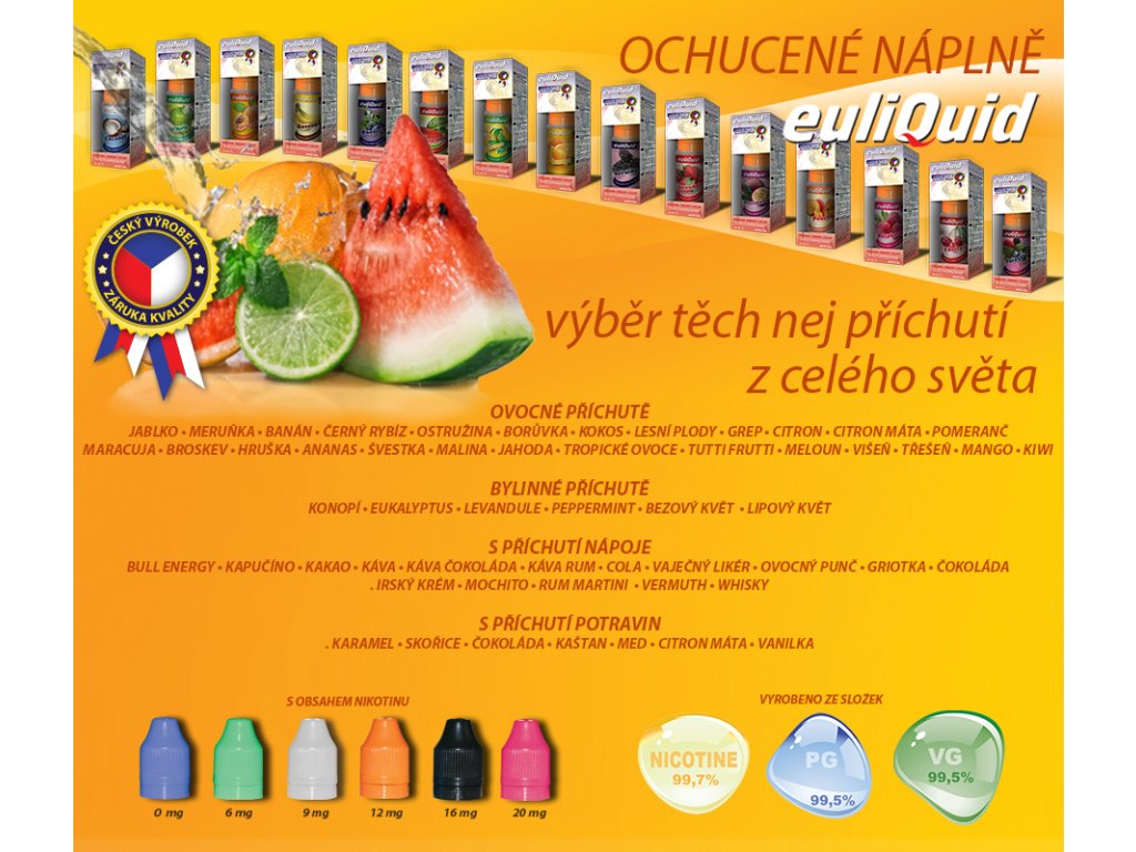 Vaperské liquidy EuliQuid - sú vyrábané zo surovín vyrobených v Českej republike, Nemecku a vo Švédsku.