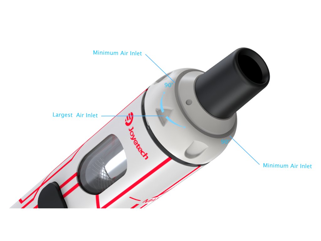 Vzduchovod náustku je vybavený špirálovým prierezom, ktorý zvyšuje komfort pri ťahaní a tiež zamedzuje prskaniu e-liquidu do úst.