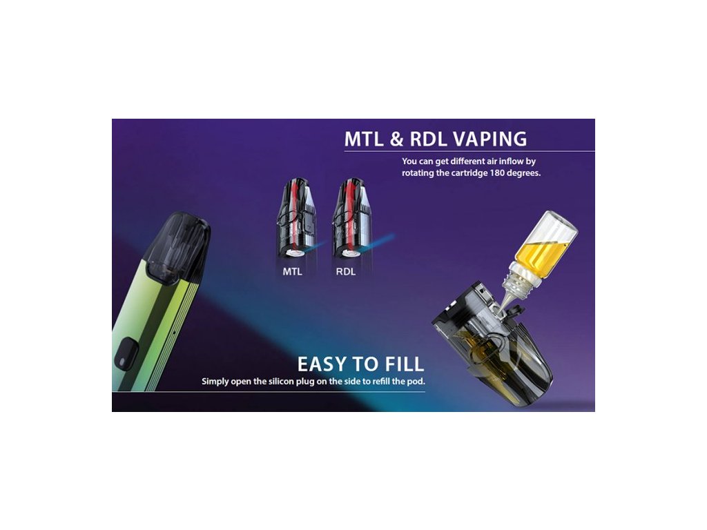 pod systém s cartridge obsahujúcou žeraviace teliesko a tank 2ml a batéria 800 mAh sú ideálnym riešením pre celodenné poťahovanie obľúbenej náplne a mini rozmery tohto prístroja umožňujú jeho nosenie kdekoľvek vo vrecku a to úplne diskrétne.