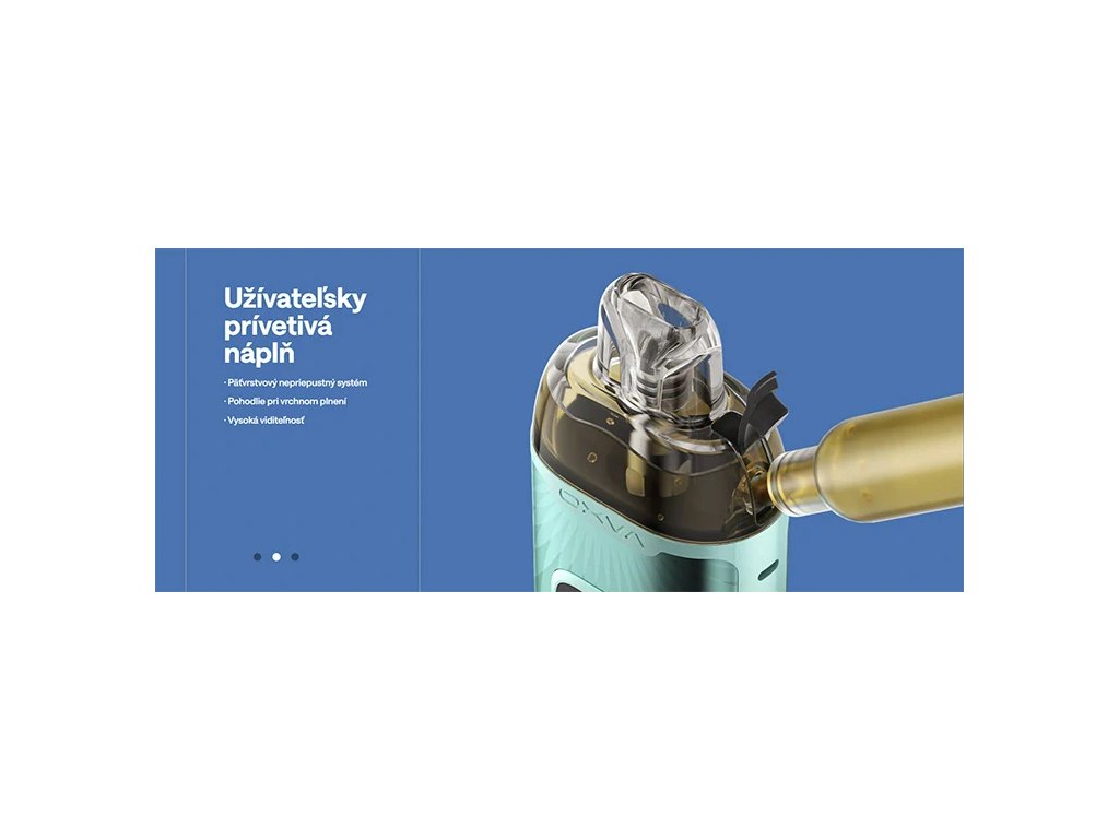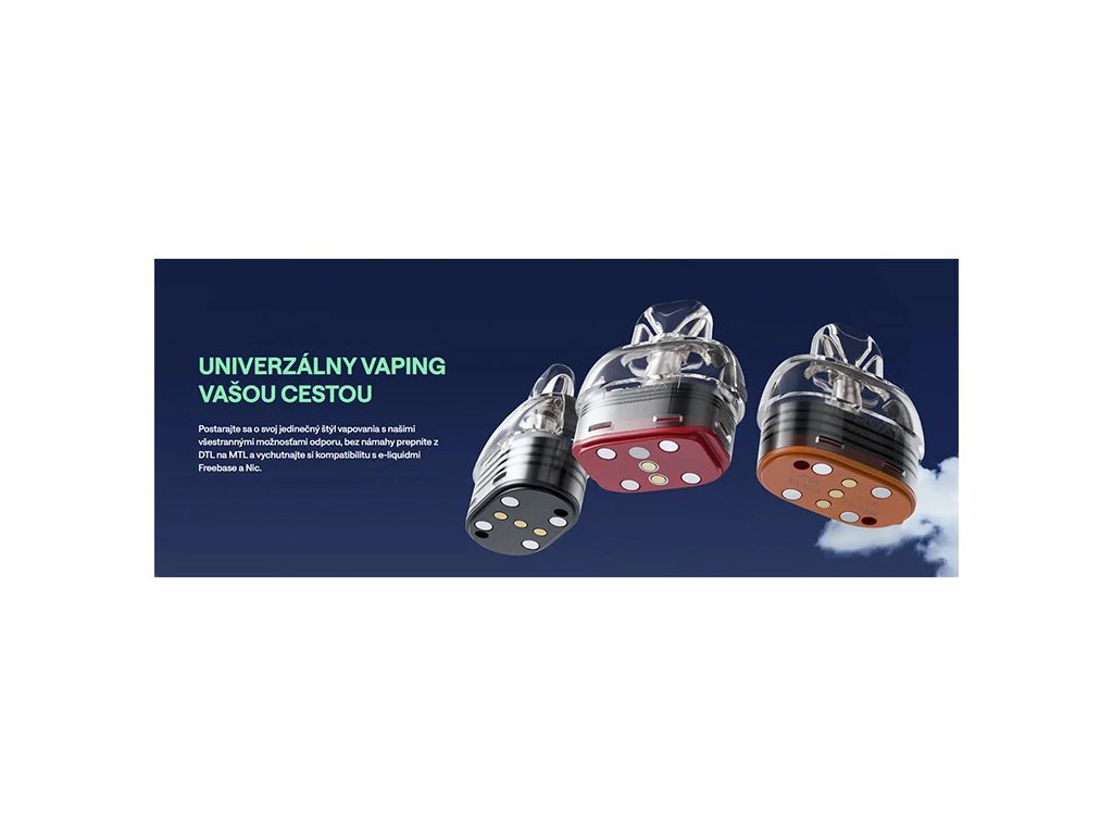- náplne: klasický e-liquid / SALT / CBD