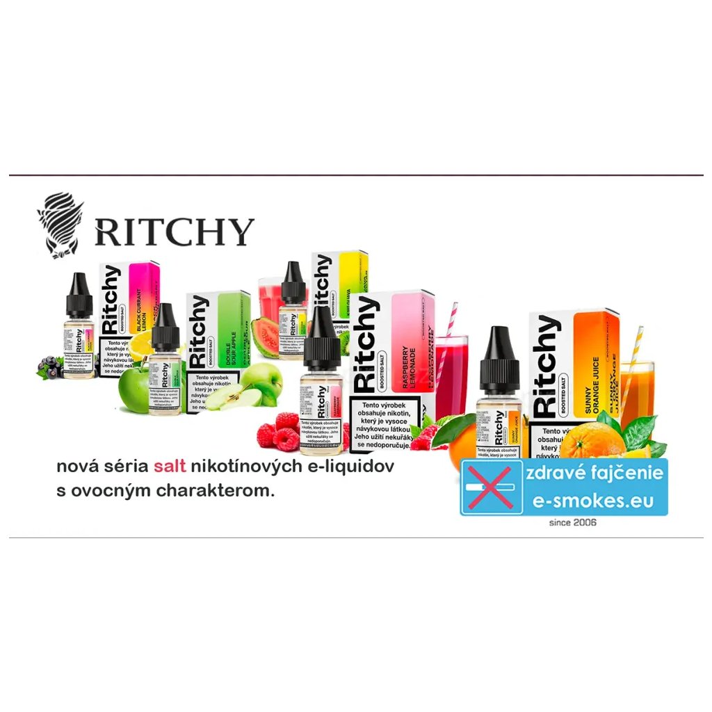 e-náplne s obsahom nikotínovej soli edície RITCHY salt nic sú produktom populárneho a dobre známeho českého výrobcu Ritchy EU s.r.o., Česká Republika, Praha.