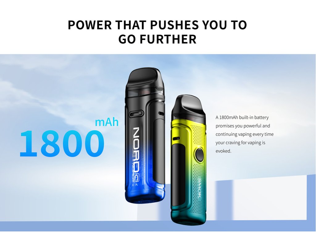 SMOK Nord C 50W Pod Kit, pokročilé a prenosné zariadenie navrhnuté pre výnimočný výkon vapingu. Tento podsystém je navrhnutý s odolným šasi zo zinkovej zliatiny a môže sa pochváliť ľahkou konštrukciou, ktorá je odolná voči ľahkým pádom a pádom, čo zaisťuje odolnosť pri každodennom používaní. Nord C je poháňaný vstavanou batériou s kapacitou 1800 mAh a ponúka dlhotrvajúce vapovanie a poskytuje pôsobivú chuť a produkciu pary.