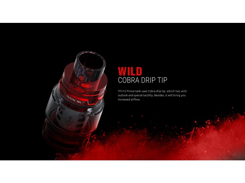 Má tiež novo navrhnutý korunkový štýl a farebný náustok s dizajnom Cobra. Okrem toho používa konvexnú sklenenú trubicu (tank) ktorá účinne zväčšuje kapacitu na 8ml!