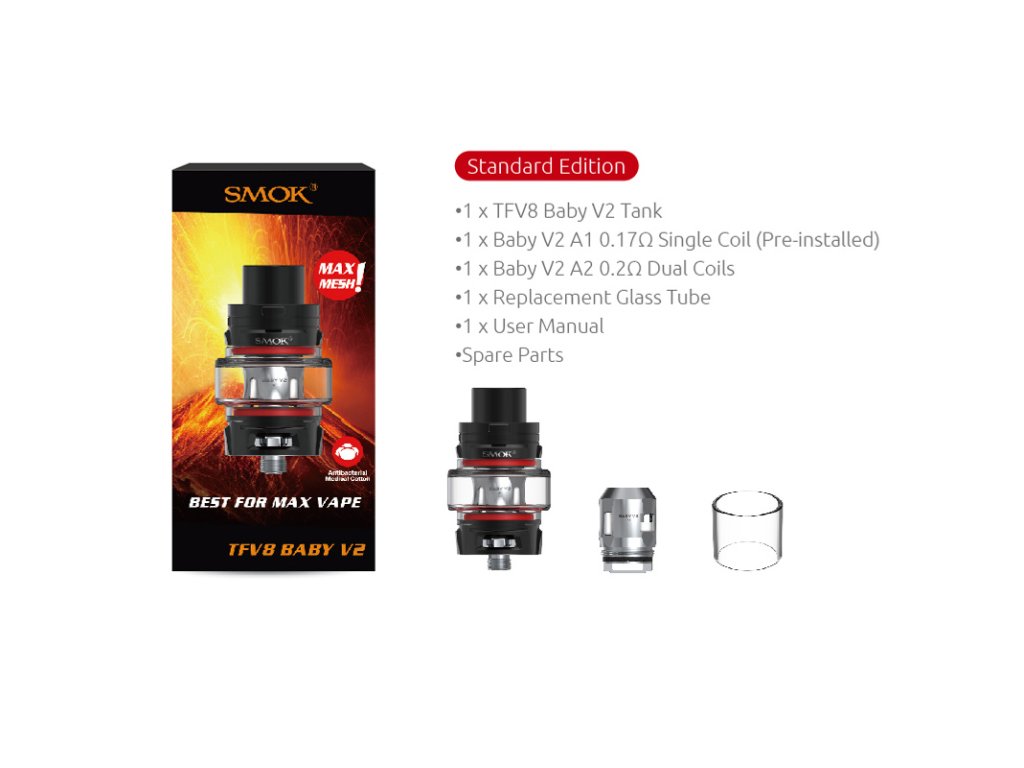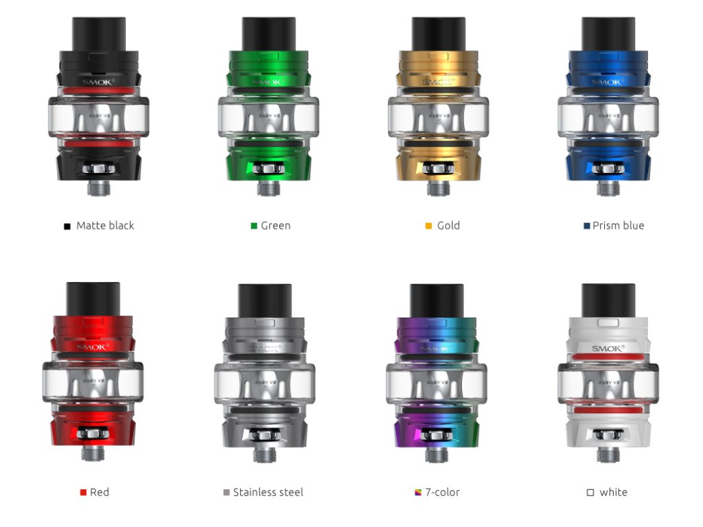 - 1 x Smoktech TFV8 Baby V2 clearomizér 5,0ml