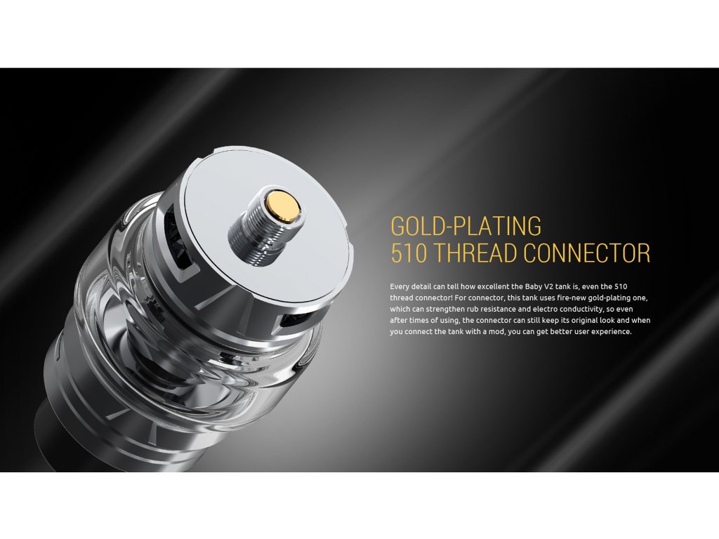 Pocit v ústach je veľmi dôležitý, preto má TFV8 BABY V2 novo skonštruovaný náustok s hygienického materiálu DELRIN, Má ideálny priemer pre DL vapovanie a nepotrebuje žiadne skrutkovanie, jeho inštaláciu dokončíte len jednoduchým zatlačením do vzduchového hrdla tanku. Všetko ale dôkladne pochopíte, keď ho vezmete do úst.