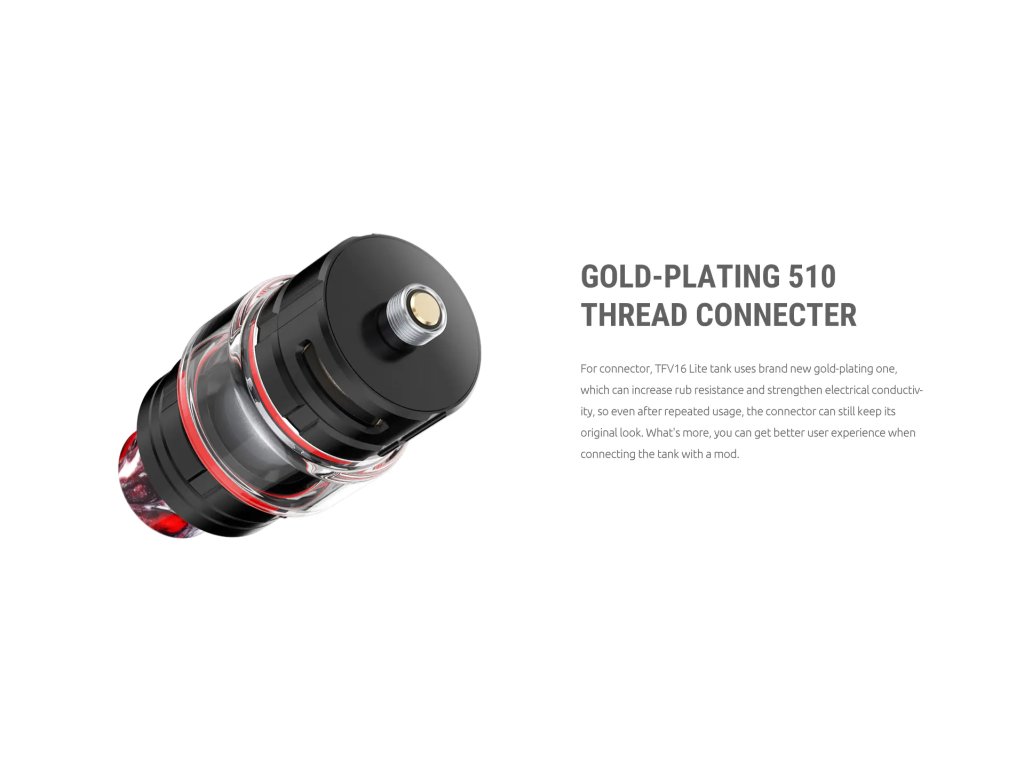 Ide o žeraviace telieska TFV16 LITE ktorých konštrukcia je v každom detajle zameraná pre zníženie prietokového odporu a zväčšenej plochy pre odparovanie e-liquidu.