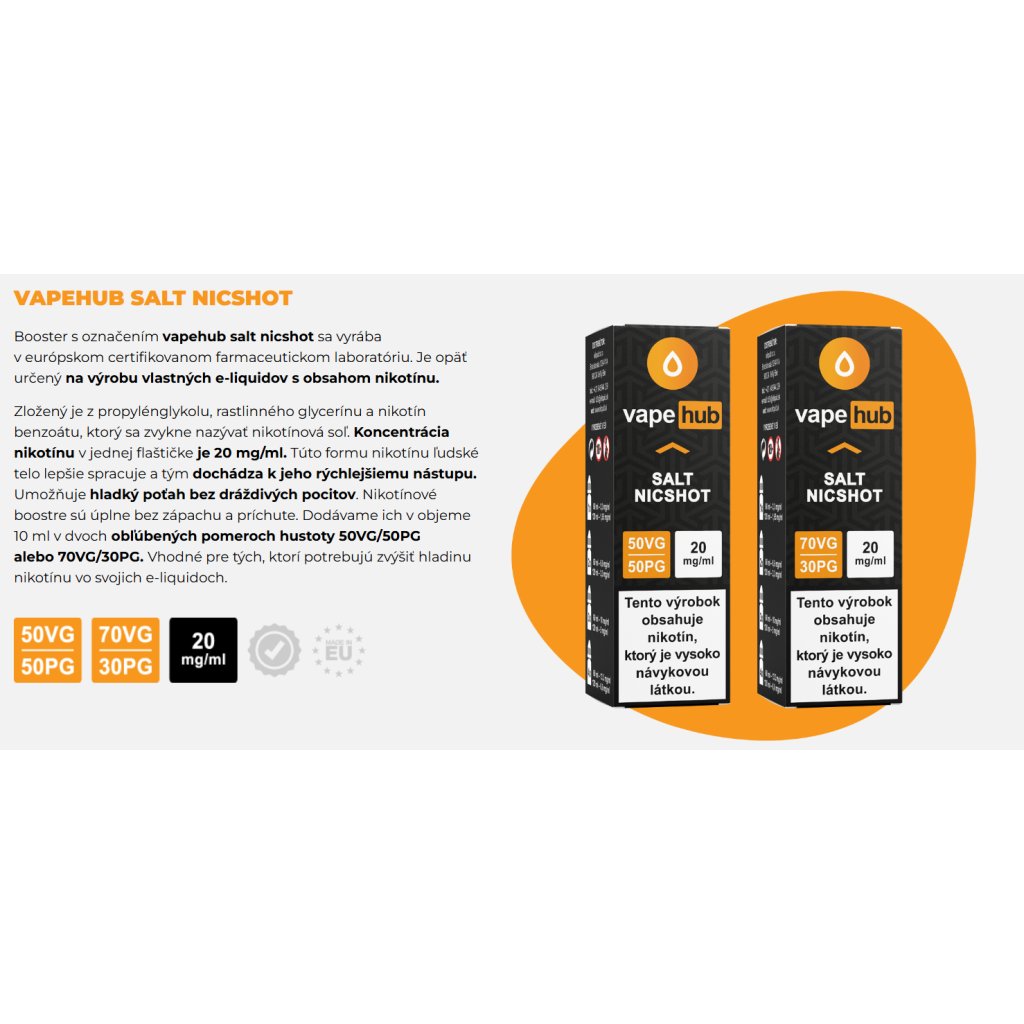 Vapehub Salt Nicshot je bezpečný spôsob, ako pridať nikotín do vášho e-liquidu.