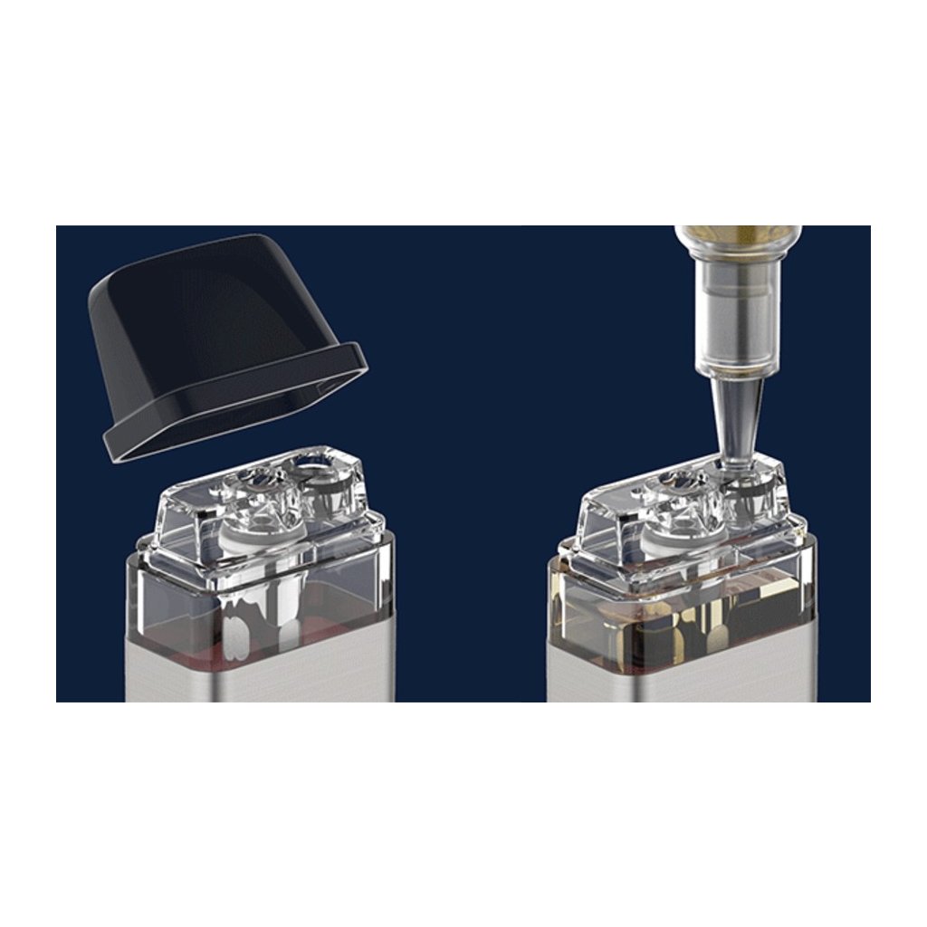 Vymeniteľný cartridge (POD) s integrovanou žeraviacou hlavou s odporom 0,8ohm má kapacitu 2ml e-liquidu. I
