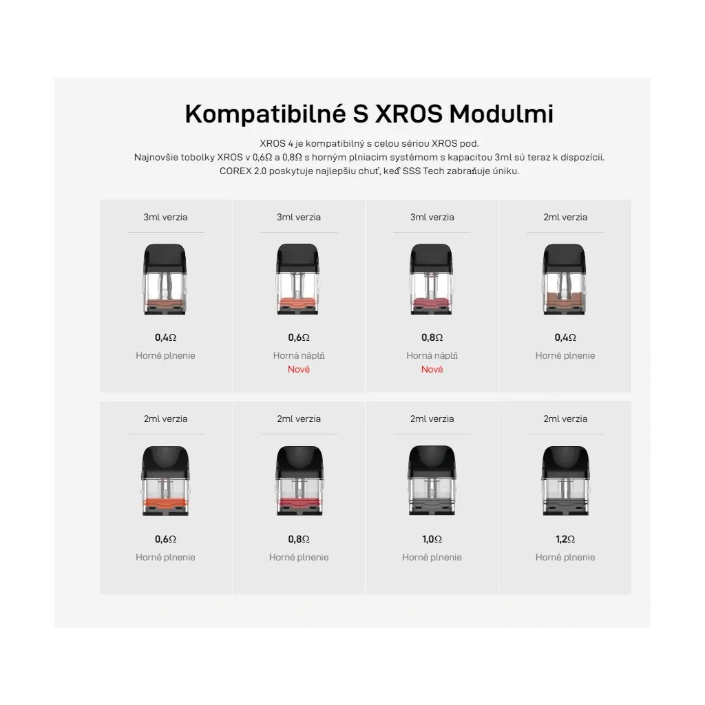 pre POD systém XROS - žeraviace teliesko vyrobené technológiou MESH optimizovaná pre rýchly nábeh, vysokú dymivosť a neskreslenú chuť. Vhodné pre použitie s klasickými, Salt aj CBD liquidmi.