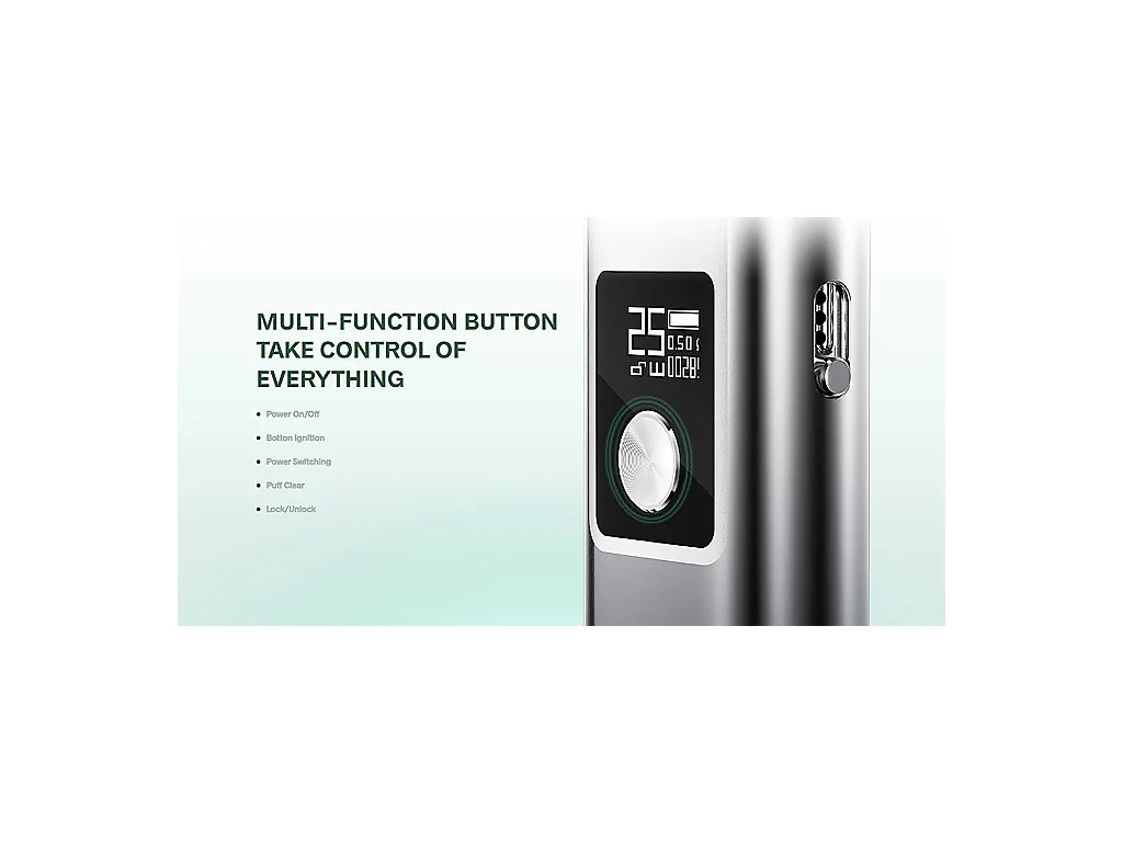 Bočný 0,69 palcový OLED displej zobrazuje kapacitu batérie, počet poťahov, odpor žeraviacej hlavy a dobu vapingu.