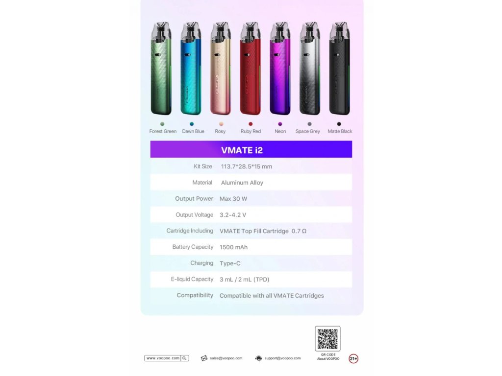 VMATE i2 je kompatibilný so všetkými kazetami série VMATE a V.THRU a automaticky prispôsobuje výstupný výkon. Môžete si slobodne vybrať a zažiť viac chutí vapingu.